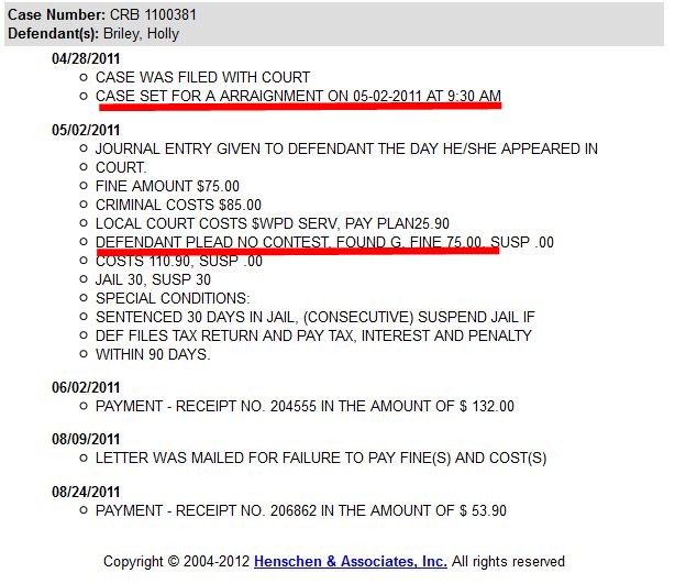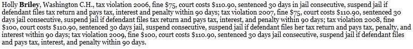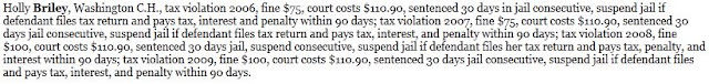 Hold on before you start spouting off about that not being a serious criminal offense and never did any jail time because there is more....A LOT MORE! It looks like Holly plead NOT GUILTY 4 different times to not paying taxes to the city. Its a 1st Degree Misdemeanor but still it is a crime.