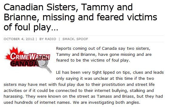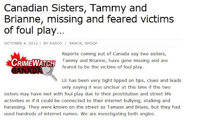 Crime Watch Canada to see if this story is in fact true or a horrible hoax. We'll let you know what they (Crime Watch Canada) have to say once we hear back from them regarding this matter.