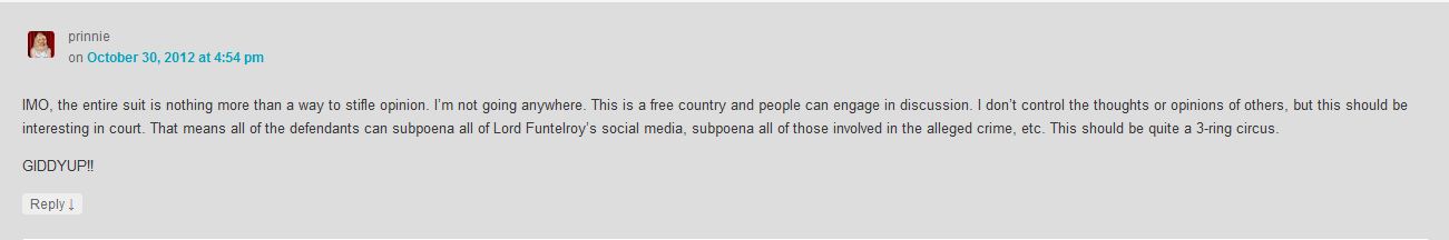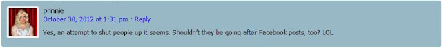 Then again does it really surprise anyone that the person mentioned,'Prinnie', is being sued? After all just look at the internet reputation she has for attacking individuals that she feels will bring hits to her blog. Now I wonder what the great Joey Ortega thinks about his star blogger being sued (LOL)?